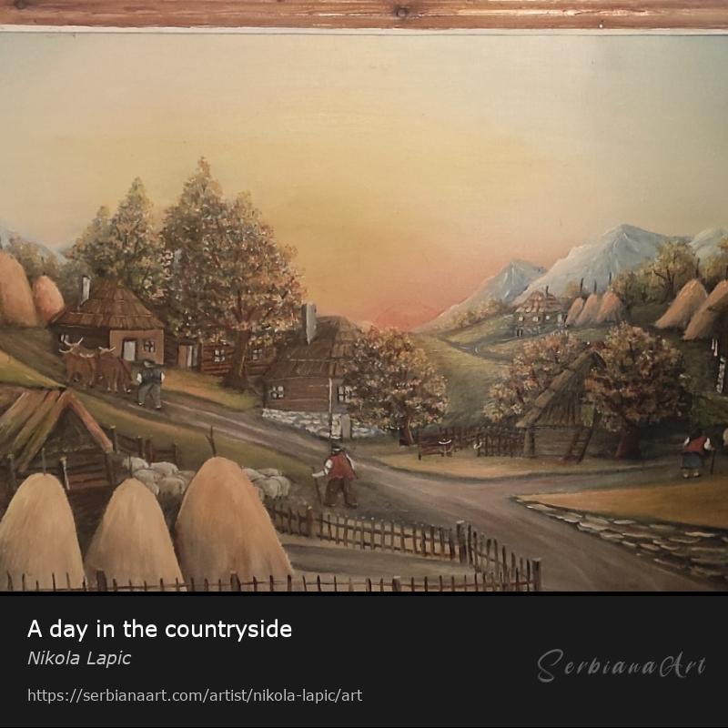 A day in the countryside, oil on canvas, 101x71cm. It's an old painting.
