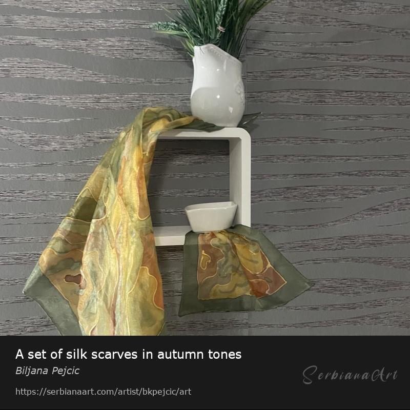 A set of silk scarves in autumn tones