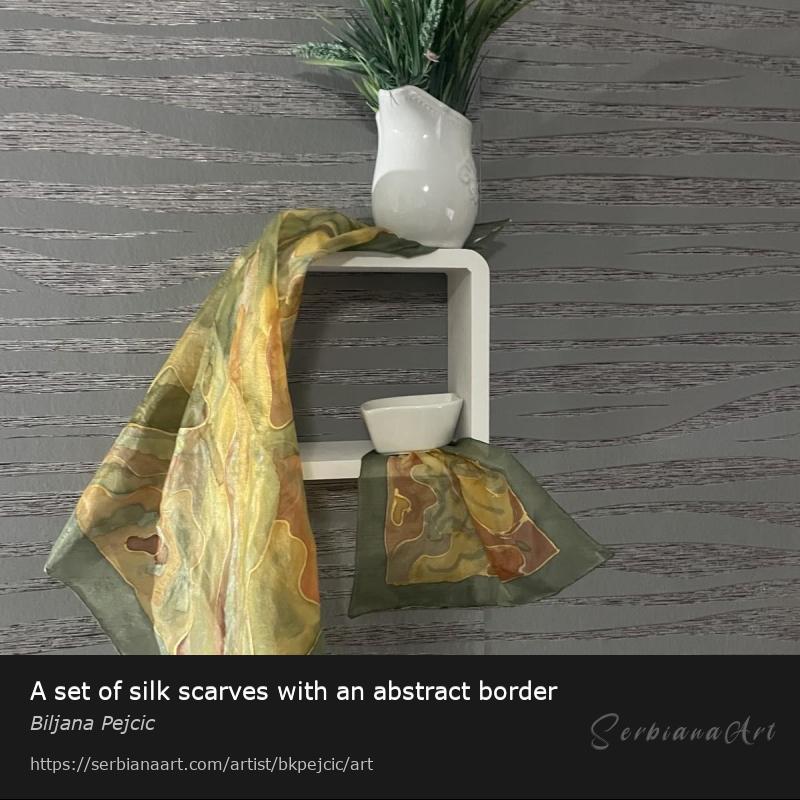 A set of silk scarves with an abstract border