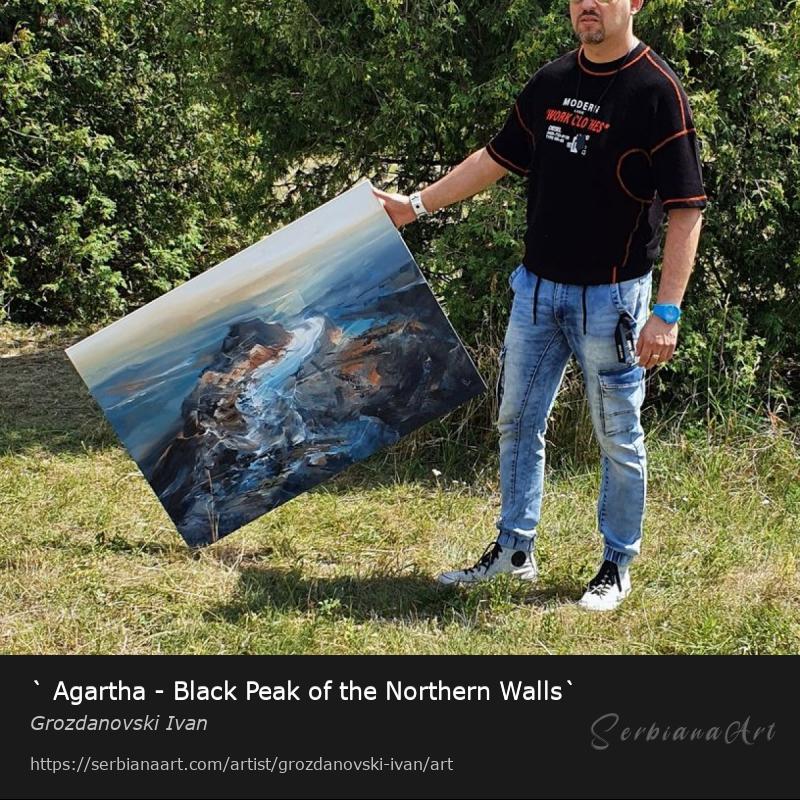 Original artwork description: " Agartha - Black Peak of the Northern Walls " W 100 x H 70 cm ......Painted with expressive moves.......with pallet knife and with a brush..... I'm giving all best, to be represent the true colors of the paintings in the photos, but sometimes you can see a little difference in tone.. I take good care packing my art, so it comes to you in the great shape. Note !!! The painting on the wall of the room is not in true scale....!!!! All my artwork is original !!! Materials used: Acrylic ( Liquitex) & Oil ( Van Gogh ) ...... quartz sand, .. on the end covered with a satin coat of varnish, to protect it for the UV and dust.Share and promote this artwork