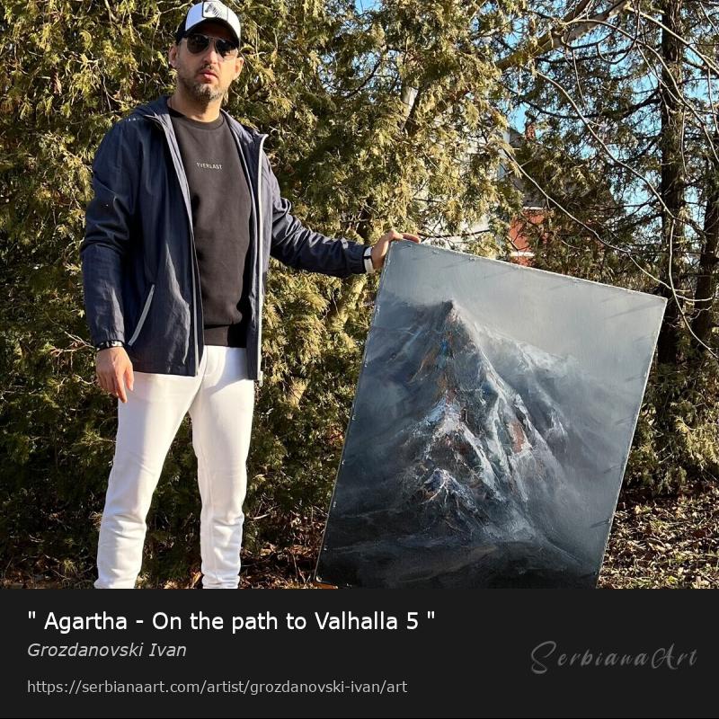 " Agartha - On the path to Valhalla 5 " .....Painted with expressive moves.......with pallet knife and with a brush.....W 80 x H 100 cm ,( W 77 x H 97 cm ,when the canvas is stretched on the wooden frame )....