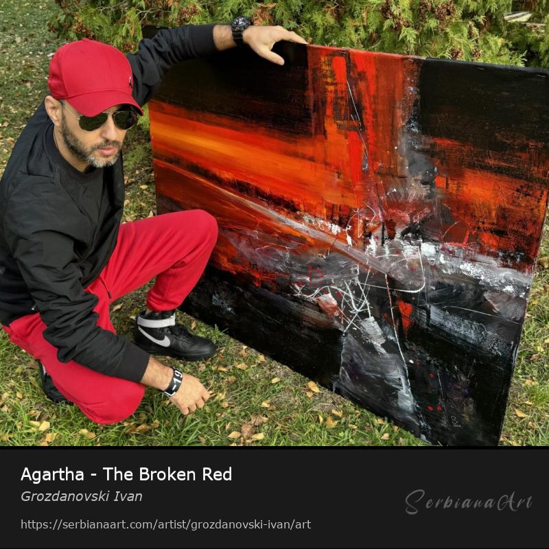 " Agartha - The Broken Red ".... W 125 x H 100 cm ( W 120 x H 95 cm ,when the canvas is stretched on the wooden frame )........Painted with expressive moves.......with pallet knife and with a brush.....