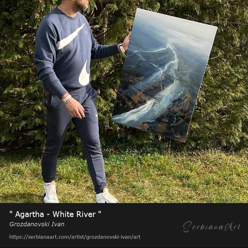 Original artwork description: " Agartha - White River "......Painted with expressive moves.......with pallet knife and with a brush..... I'm giving all best, to be represent the true colors of the paintings in the photos, but sometimes you can see a little difference in tone.. I take good care packing my art, so it comes to you in the great shape. Note !!! The painting on the wall of the room is not in true scale....!!!! All my artwork is original !!! Materials used: Acrylic ( Liquitex) ...... quartz sand.. on the end covered with a satin coat of varnish, to protect it for the UV and dust.Share and promote this artwork
