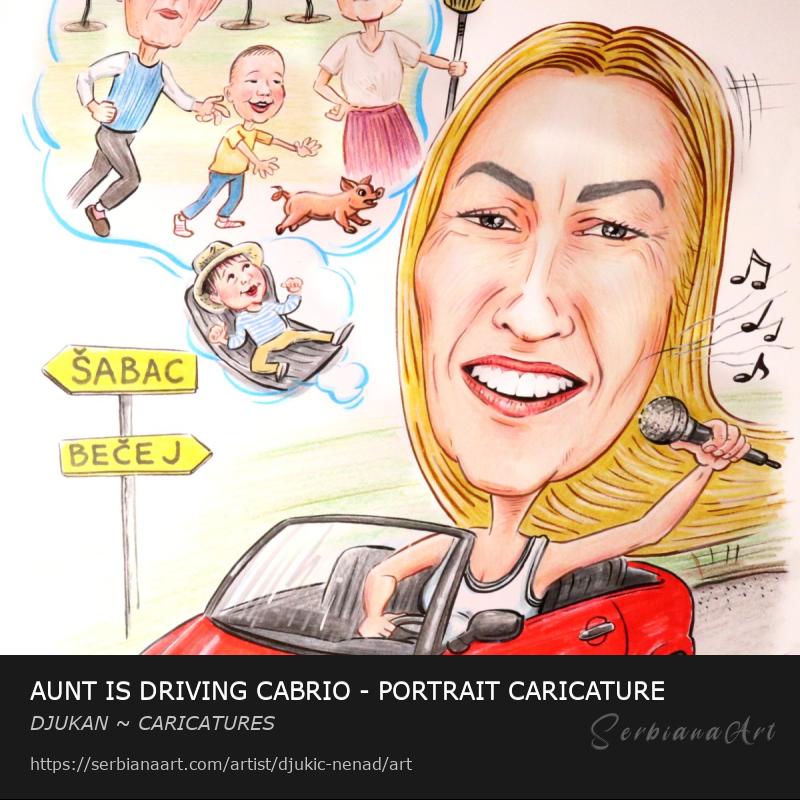 AUNT IS DRIVING CABRIO - PORTRAIT CARICATURE