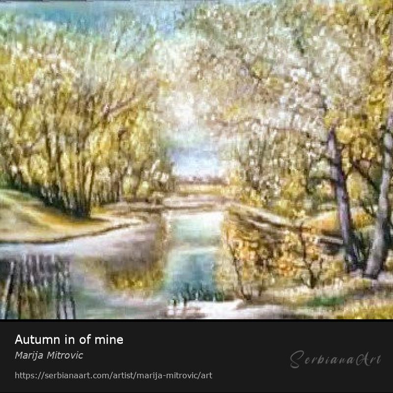 The picture is made on Italain canves with high-quality oil paints.The picture describes a beautiful autumn in my area.The ispiration for this picture is autumn in my area,yellow green leaves, a rives.A beautiful decoration for every home can bea gift.the price of the picture additionnal costs for abroad.