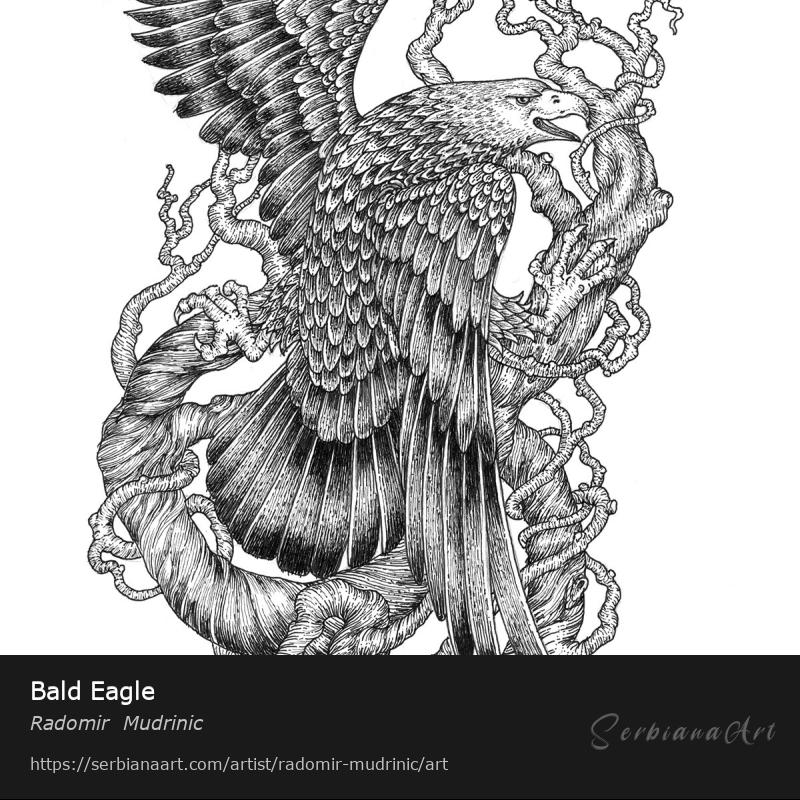 Bald eagle made in the pen and ink drawing technique.