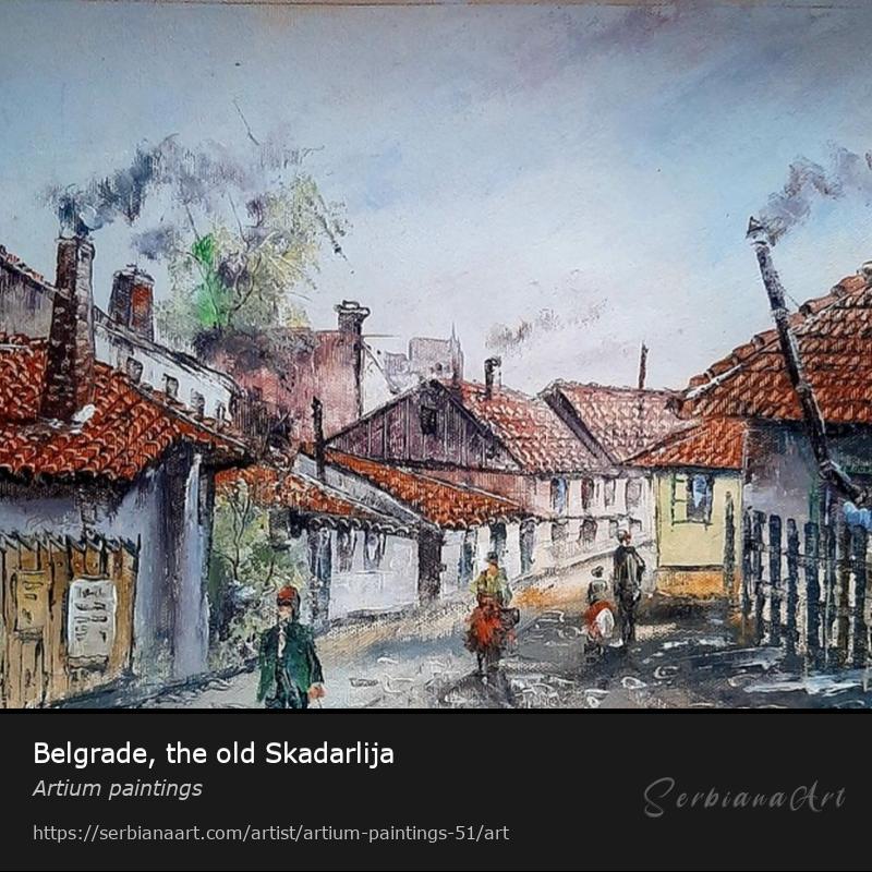 The painting ``Belgrade, old Skadarlija`` shows one of the oldest and most beautiful streets in Belgrade. The painter decided to show Skadarka Street from the beginning of the 20th century.Share and promote this artwork