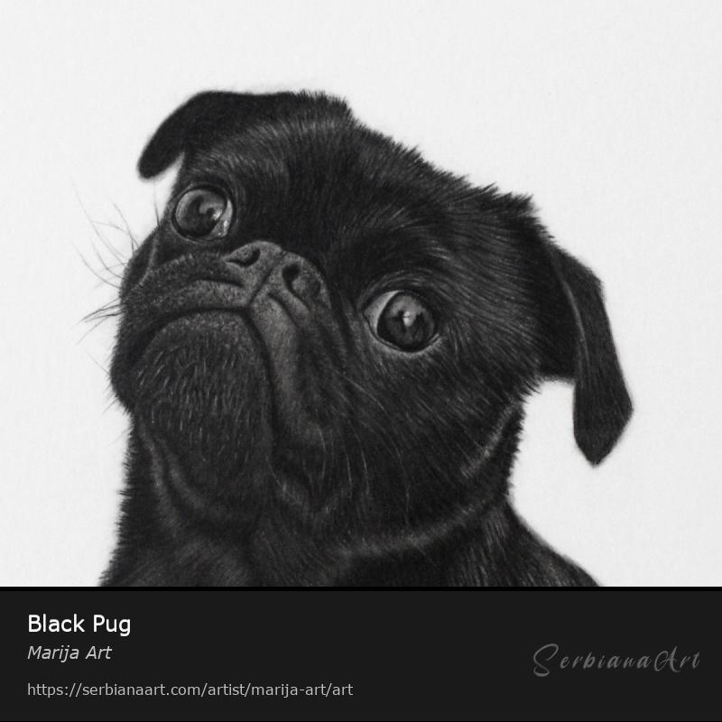 The original Black Pug drawing , was hand-made with Charcoal and Graphite pencil on Fabriano smooth paper.