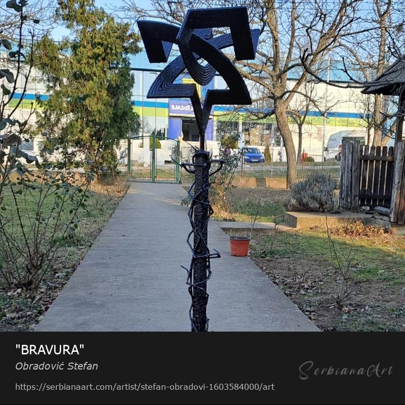 The sculpture "BRAVURA" was made by welding scrap metal.