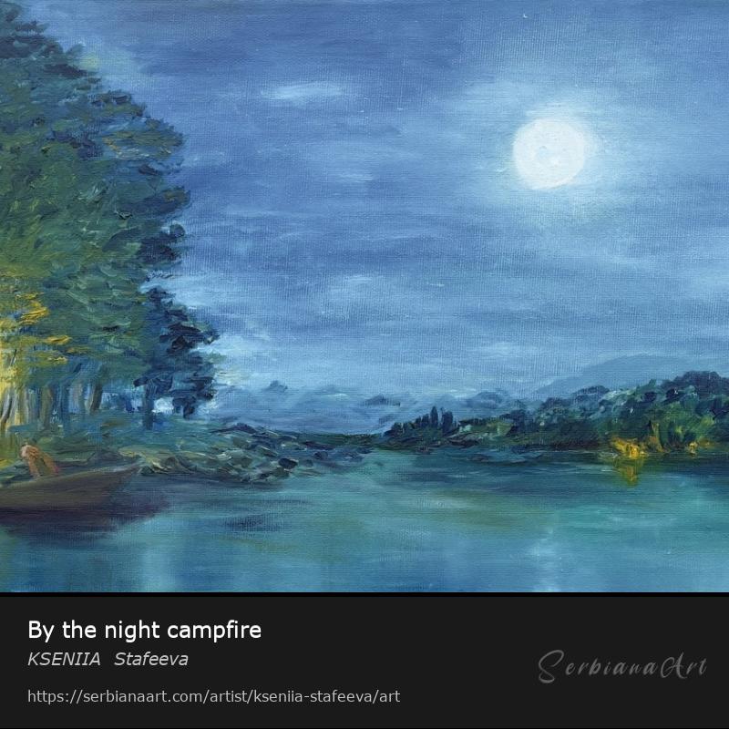 The picture is written based on a childhood memory. Night fishing season. The river is very deep, the nights are cold. I have always been the one who watches the fire for the fishermen and listens to their stories and tales