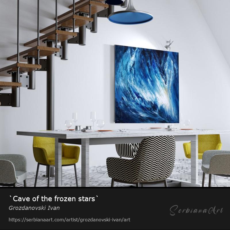 Artist's description: "Cave of the frozen stars"......the new cycle ; "Ice Worlds"......Impressionistic style....... ....Painted with expressive moves...........with a lot of emotion!!!.. Large painting 80x80cm I'm giving all best, to be represent the true colors of the paintings in the photos, but sometimes you can see a little difference in tone.. I take good care packing my art,so it comes to you in the great shape. Note !!! The painting on the wall of the room is not in true scale....!!!! All my artwork is original !!!! Materials used: Acrylic ( Liquitex)..... on the end covered with a satin coat of varnish, to protect it for the UV and dustShare and promote this artwork