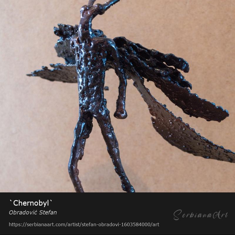 Sculpture called `Chernobyl` made of scrap metal by welding and sanding, painted. The sculpture symbolizes the Chernobyl event and its aftermath. The total height of the sculpture is about 25 cm. Dimensions of the base of the stand 9x6cm and height 3.5cm. Author Stefan Obradović is a representative of marginal art. The work was created during 2021. Worldwide air-mail shipping, please contact me for detail price list for each country, thanks. Long time seller, happy customers from all over the world. 100% positive reviews from other world famous online selling platforms.Share and promote this artwork