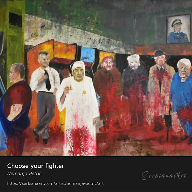 - Shown leaders: Former presidents of the SFRY, FRY, as well as leaders of newly formed states — all in the same space, without hierarchy, which suggests the alignment of historical differences through the prism of contemporary populism and media banalization. Leaders become avatars, inauthentic, replaceable — a critique of post-truth, where history is reinterpreted through media, memes and nostalgia.