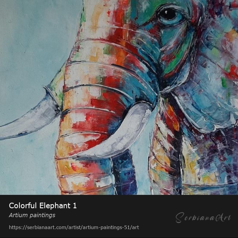 The painting ``Colorful Elephant 1`` will enrich every interior thanks to its rich color.Share and promote this artwork