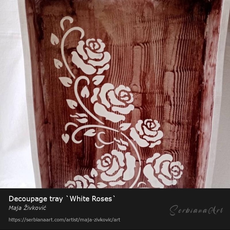 Handmade, unique decoupage tray, dimensions: 35x25 cm. Share and promote this artwork