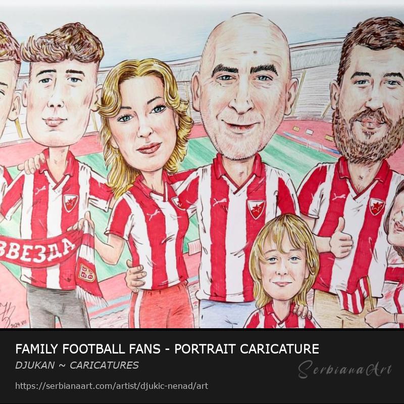 FAMILY FOOTBALL FANS - PORTRAIT CARICATURE