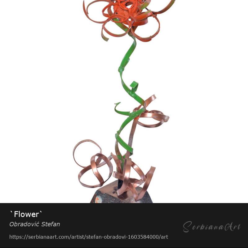 ``Flower`` metal sculpture painted with metal paint. Stand 10x10x10cm on which there will be a flower. The total height from the bottom of the base to the top of the flower is 40 cm.Share and promote this artwork