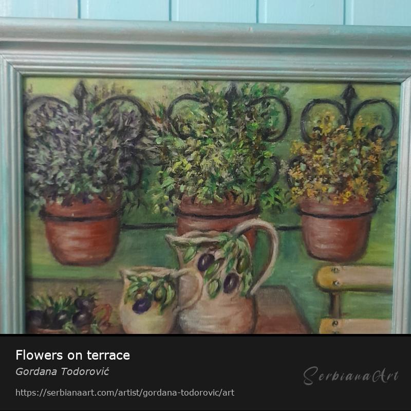 Flower pots on my terrace.They are inspired by the calmness of a day full of light.Framed and otiginal pucture.Painted in 2019 only now on sale.Contact phone +38163344652 iml:gordana.todorovic47@gmail.com