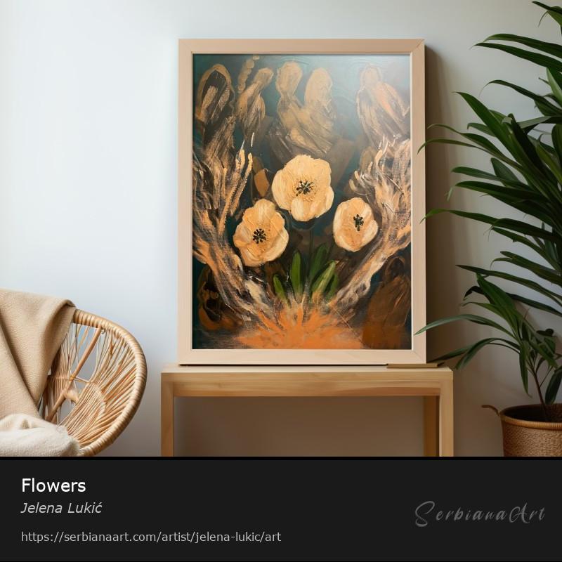 Magical moments in the room with a picture of flowers, perfect as a decoration. It belongs to the mix direction of symbolism, abstract and expression Share and promote this artwork