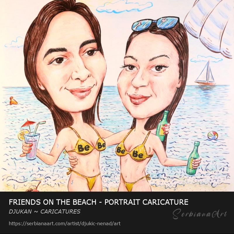 FRIENDS ON THE BEACH - PORTRAIT CARICATURE