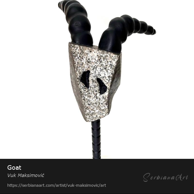 This sculpture representing a "goat gaze" is made out of granite, metal and wood, and it dominates the place where it stands with tranquility and salvation.