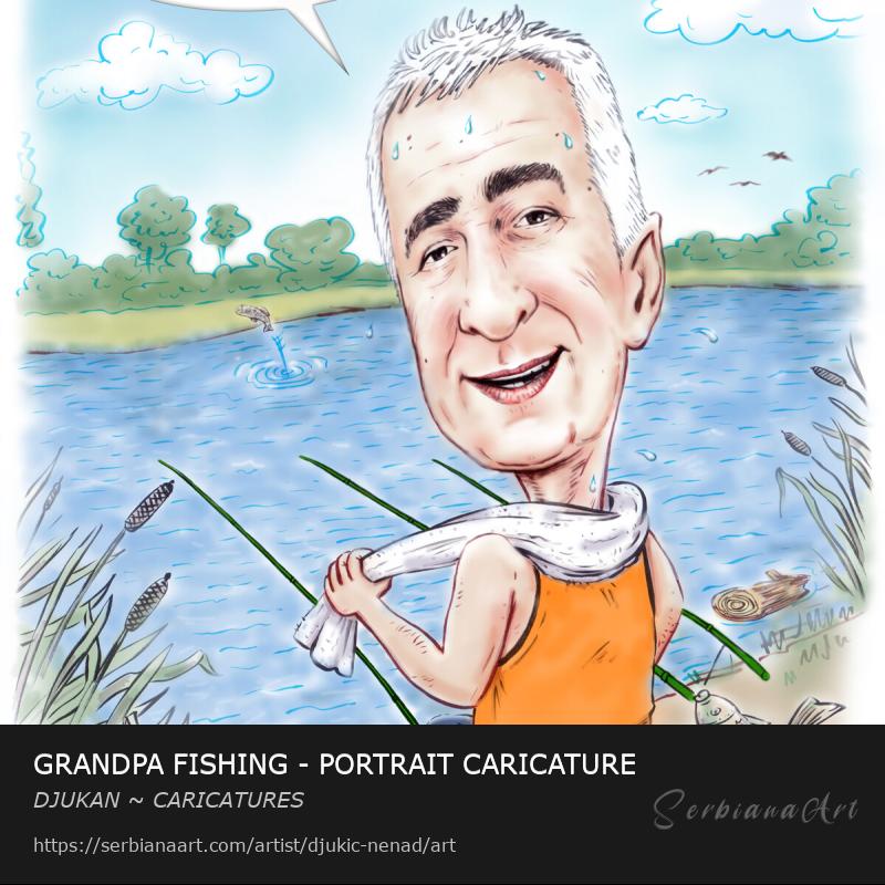 GRANDPA FISHING - PORTRAIT CARICATURE