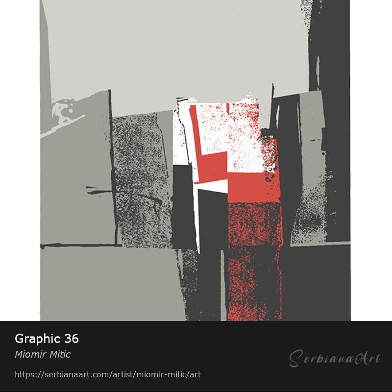 In his latest work, Mitić simplifies the form even further, gives it dynamism and adds expressiveness by accented painted surfaces. Thus, the graphics become a fluid structure that, with unusual color explosions, speak through the voices of their symbolic values. The composition and its coherence are projected as a rounded and harmonious artistic entity with clearly emphasized humanistic accents. Matter, duration and time are active creators of both visual and philosophical visions. Such abstract structure of graphics allows no easy entrance into their spiritual layer of meaning.