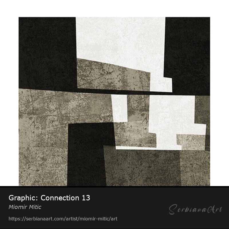 In his latest work, Mitić simplifies the form even further, gives it dynamism and adds expressiveness by accented painted surfaces. Thus, the graphics become a fluid structure that, with unusual color explosions, speak through the voices of their symbolic values. The composition and its coherence are projected as a rounded and harmonious artistic entity with clearly emphasized humanistic accents. Matter, duration and time are active creators of both visual and philosophical visions. Such abstract structure of graphics allows no easy entrance into their spiritual layer of meaning.