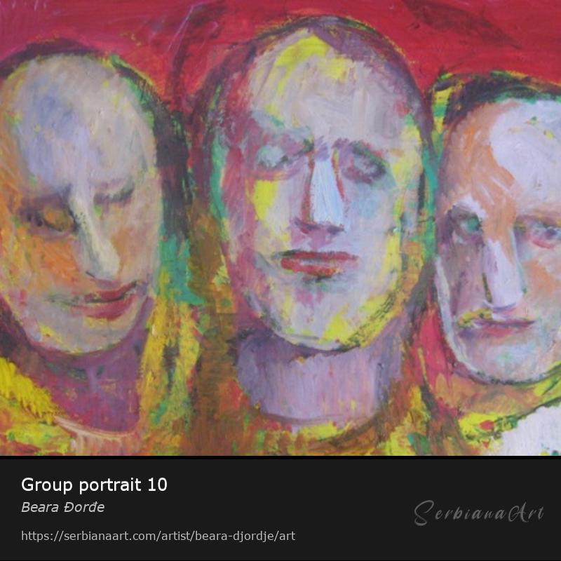 Painting on paper, mixed media acrylic oil. The topic is a group portrait. The Expressionist style (German Expressionism).Share and promote this artwork