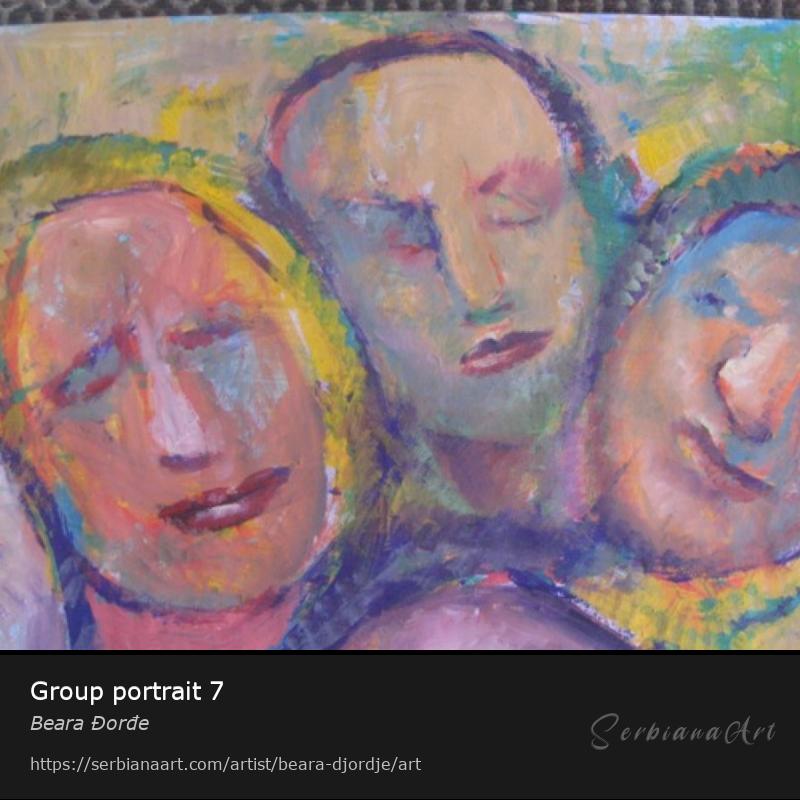 Painting on paper, mixed media acrylic oil. The topic is a group portrait. The Expressionist style (German Expressionism).Share and promote this artwork