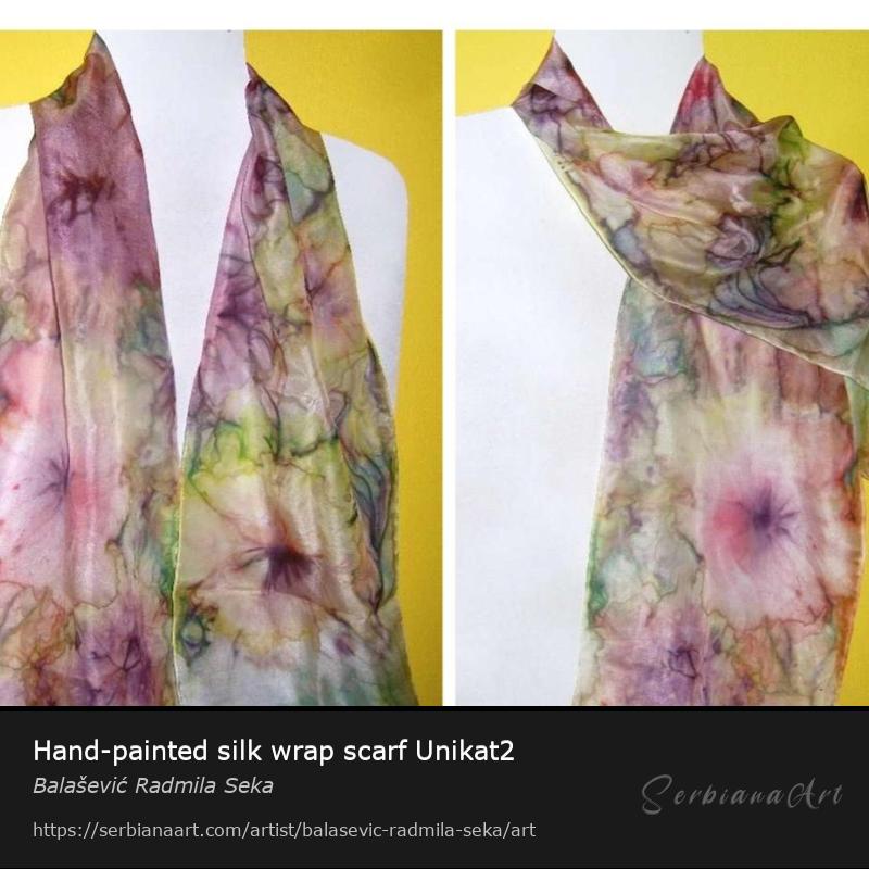 Hand-painted silk wrap scarf Unikat2Share and promote this artwork