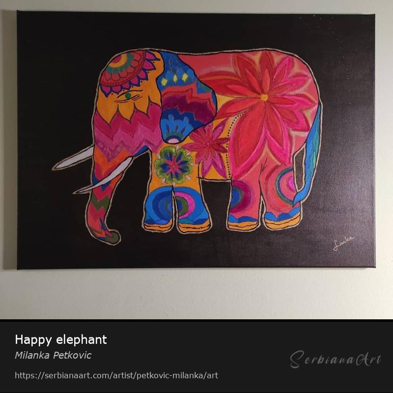‚‚Happy Elephant‚‚ is inspired by the love for India, and the elephant as a synonym for a wonderful animal. Combined technique of mandala in parts, as well as zentangli, with elements of dot mandala.Share and promote this artwork