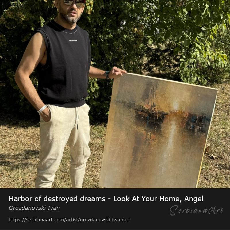 " Harbor of destroyed dreams - Look At Your Home, Angel ".....Painted with expressive moves.......with pallet knife and with a brush.....W 80 x H 100 cm ,( This art work is painted on professional 380 gram Italian canvas )