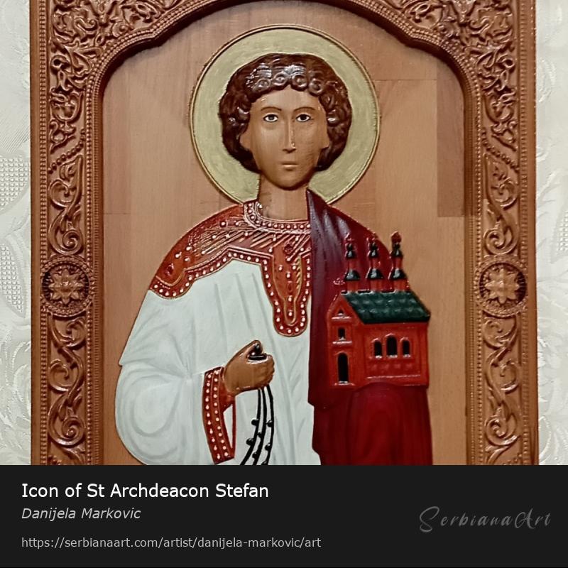 Hand-painted icon of St. Archdeacon Stefan. Woodcut on beech wood, painted with acrylic paints and protected with varnish.