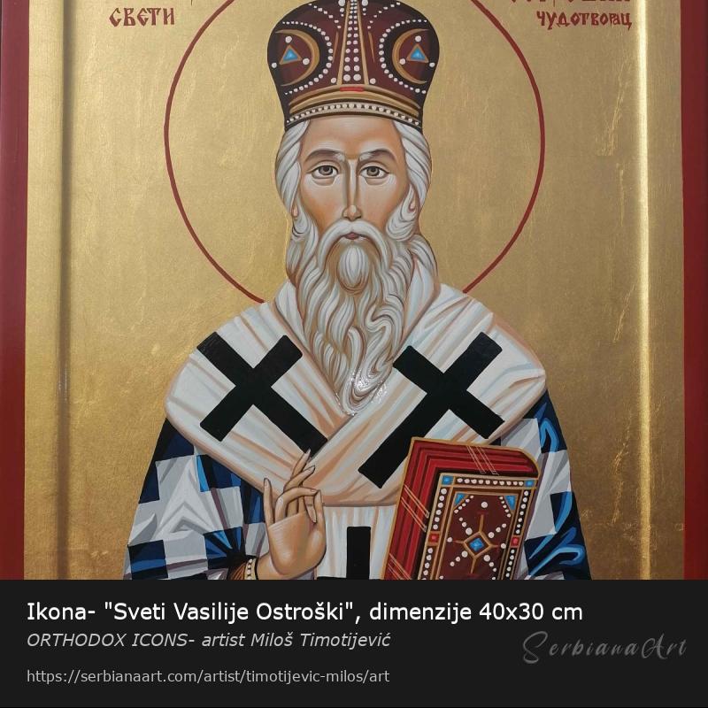 Ikona- "Sveti Vasilije Ostroški", dimenzije 40x30 cm