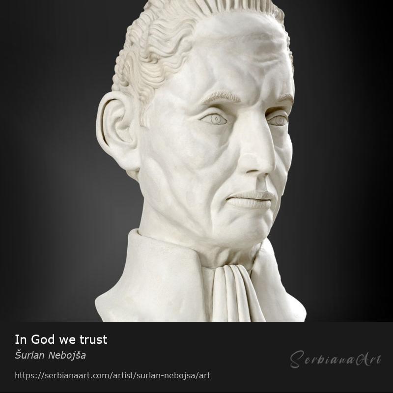 Sculpture name: ''In God we trust'' Material: Clay Dimensions: 27 x 25 x 47 cm This artwork is made of water-based clay dried without baking and it is not water resistantShare and promote this artwork