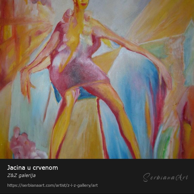 Jacina u crvenom, autor Zvezdana Elezović, ulje na platnu, 70cm x 50cm Слика је била изложена на изложби у ШвајцарскојShare and promote this artwork