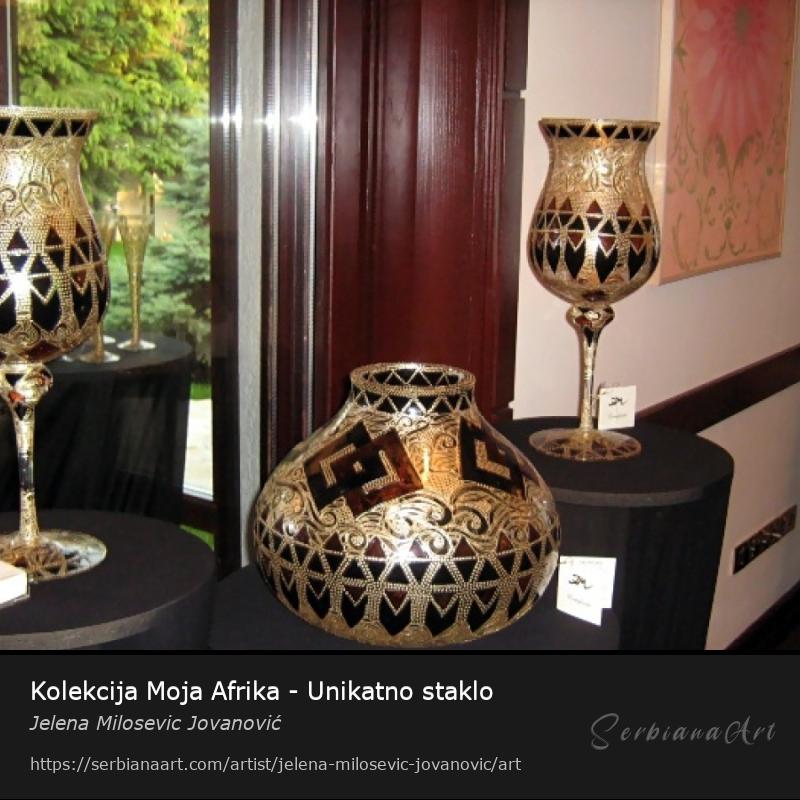 Kolekcija Moja Afrika - dva velika svecnjaka i velika cinija, rukom slikano, unikatno staklo.Share and promote this artwork