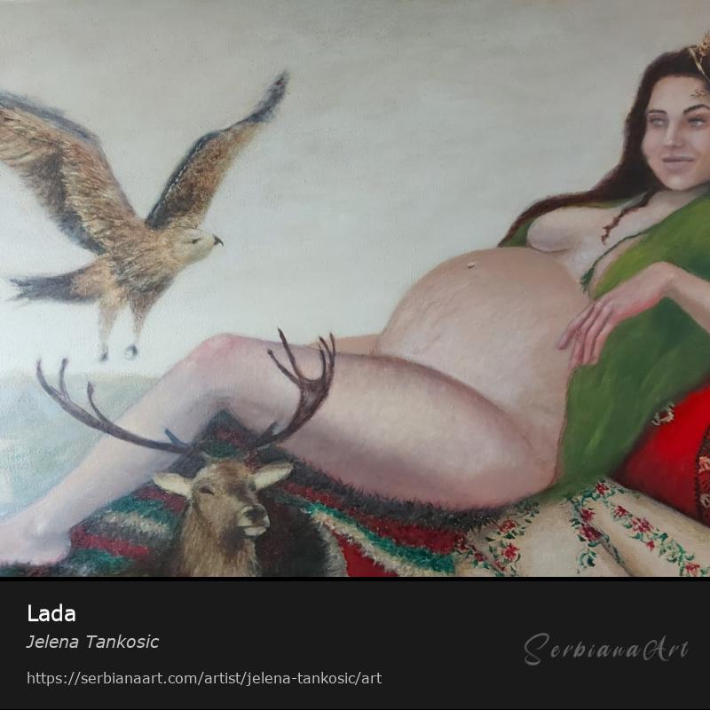 "Lada is a Slavic goddess of love and beauty and she is very famous among other tribes too. This mighty goddess is also showing up in a form of Freyja, Isis, Aphrodite and many others. She is linked with Venus and its power. Lada is presented as a girl with long golden hair in which is sometimes placed a wreath of wheat, which symbolizes her function of the goddess of fertility.