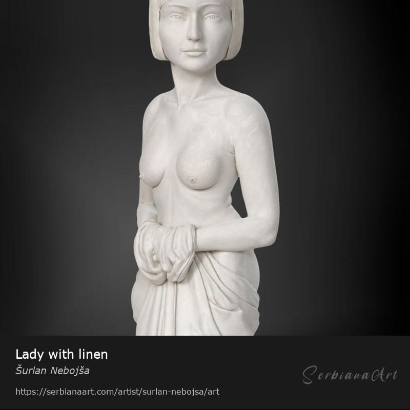 Sculpture name: Lady with linen Material: Clay Dimensions: 56,5 x 27,5 x 28,7 cm This artwork is made of water-based clay dried without baking and it is not water resistantShare and promote this artwork