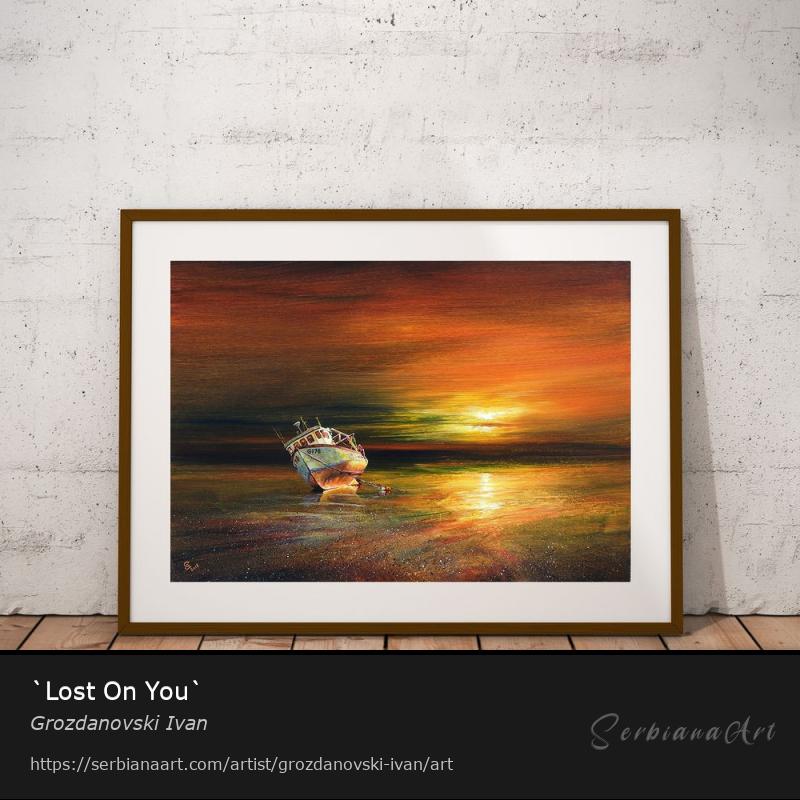 Artist's description: "Lost On You".....Impressionistic style....... ....Painted with expressive moves...........with a lot of emotion!!!... dim: W70xH50cm I'm giving all best, to be represent the true colors of the paintings in the photos, but sometimes you can see a little difference in tone.. I take good care packing my art,so it comes to you in the great shape. Note !!! The painting on the wall of the room is not in true scale....!!!! All my artwork is original !!!! Lost On You: When you get older, plainer, saner Will you remember all the danger We came from? Burning like embers, falling, tender Longing for the days of no surrender Years ago And will you know So smoke ’em if you got ’em Cause it’s going down All I ever wanted was you I’ll never get to heaven Cause I don’t know how Let’s raise a glass Or two To all the things I’ve lost on you Tell me are they lost on you Just that you could cut me loose After everything I’ve lost on you Is that lost on you? Is that lost on you? Baby, is that lost on you? Is that lost on you? Wishin’ I could see the machinations Understand the toil of expectations In your mind Hold me like you never lost your patience Tell me that you love me more than hate me All the time And you’re still mine So smoke ’em if you got ’em Cause it’s going down All I ever wanted was you Let’s take a drink of heaven This can turn around Let’s raise a glass Or two To all the things I’ve lost on you Tell me are they lost on you? Just that you could cut me loose After everything I’ve lost on you Is that lost on you? Is that lost on you? Baby, is that lost on you? Is that lost on you? Let’s raise a glass Or two To all the things I’ve lost on you Tell me are they lost on you Just that you could cut me loose After everything I’ve lost on you Is that lost on you? Is that lost on you? Materials used: Acrylic ( Liquitex)..... on the end covered with a satin coat of varnish, to protect it for the UV and dustShare and promote this artwork