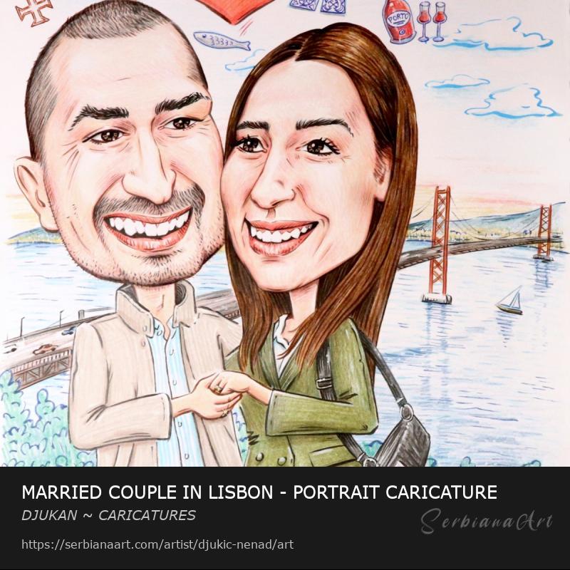 MARRIED COUPLE IN LISBON - PORTRAIT CARICATURE
