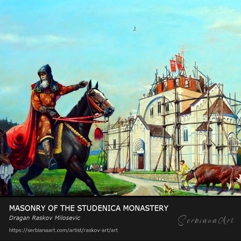 Figurative representation of Stefan Nemanja and his wife Ana while the Studenica monastery is being built...