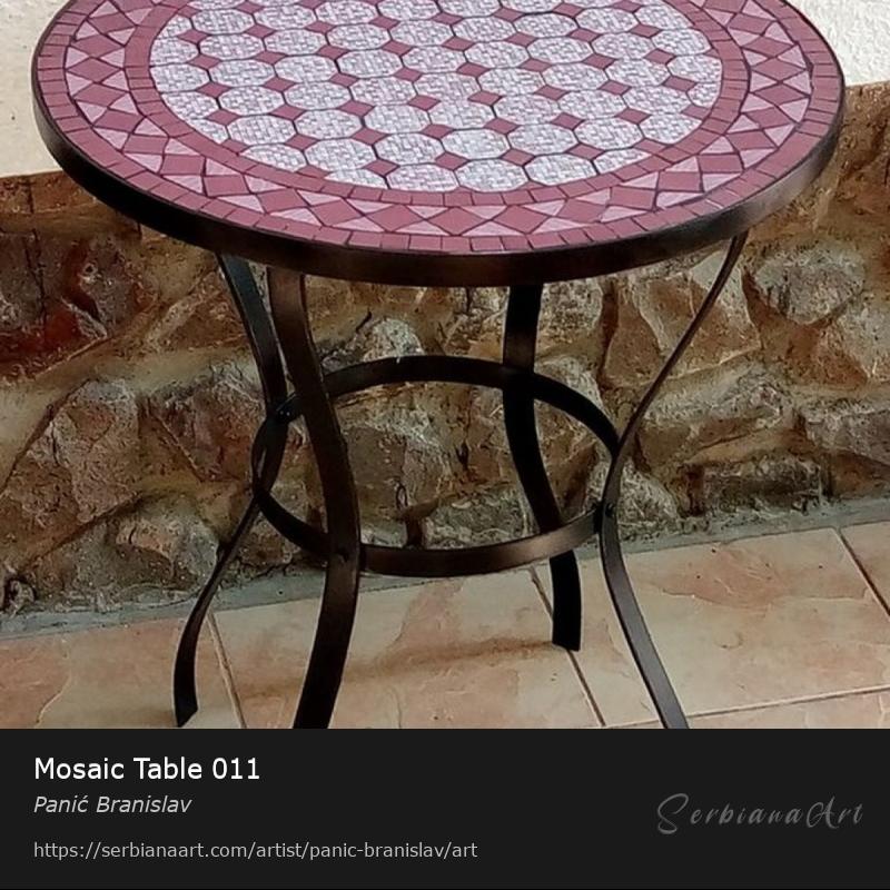 This mosaic table was made from ceramic tiles, glued with cement, frame and legs are metal.Share and promote this artwork