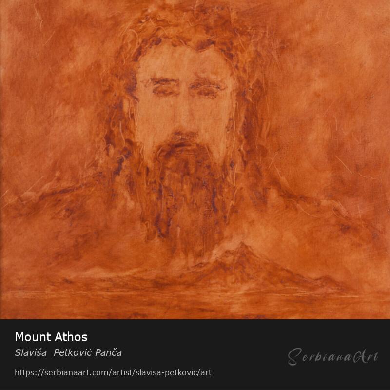 Religious theme, inspired by the stay on Mount Athos. Peace and tranquility captured on canvas.