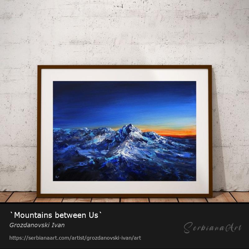 Artist's description: "Mountains between Us"..........Impressionistic style....... ....Painted with expressive moves...........with a lot of emotion!!!.. I'm giving all best, to be represent the true colors of the paintings in the photos, but sometimes you can see a little difference in tone.. I take good care packing my art,so it comes to you in the great shape. Note !!! The painting on the wall of the room is not in true scale....!!!! All my artwork is original !!!! Materials used: Acrylic ( Liquitex)..Oil (Van Gogh)... on the end covered with a satin coat of varnish, to protect it for the UV and dustShare and promote this artwork