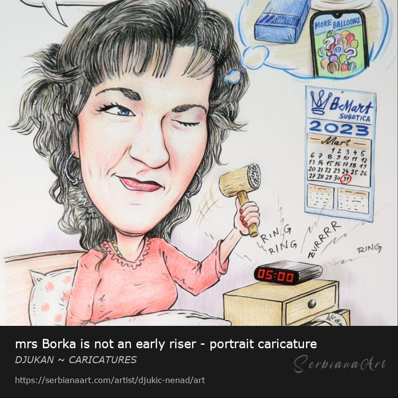 mrs Borka is not an early riser - portrait caricature
