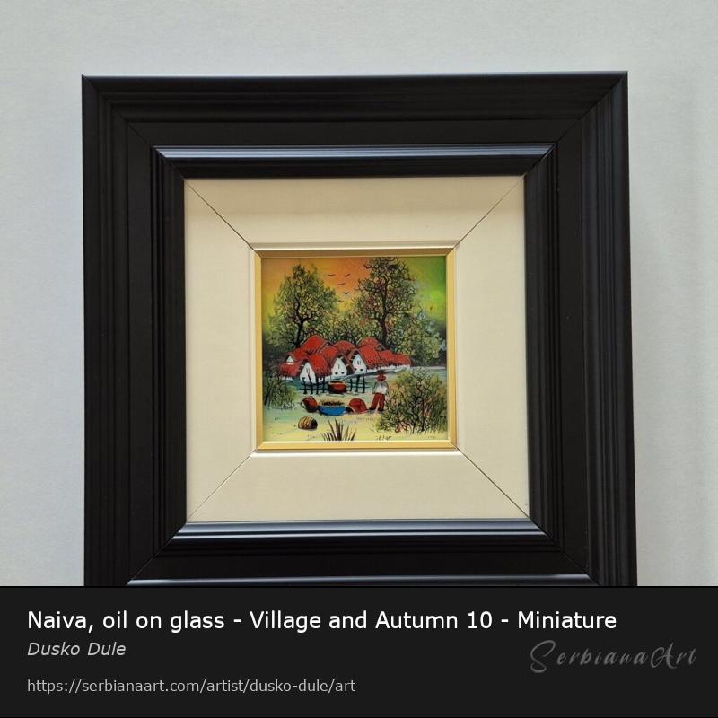 Naiva, oil on glass - Village and Autumn 10 - Miniature