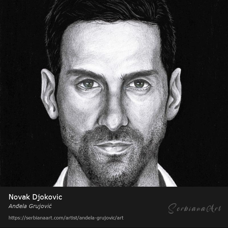 A portrait inspired by the figure of an athlete whose name symbolizes unwavering will, strength, discipline, perseverance. This work is a tribute to a man who pushed the boundaries not only on the field, but also in the hearts of millions of people around the world. The pride and joy of Serbia, Novak Djokovic in black and white technique that further highlights his character and determined look, with an accent on his eyes which are made with green dry pastel. Work done with attention to every detail, from light transitions to the texture of the face, beard, hair. This work carries the spirit of a champion.