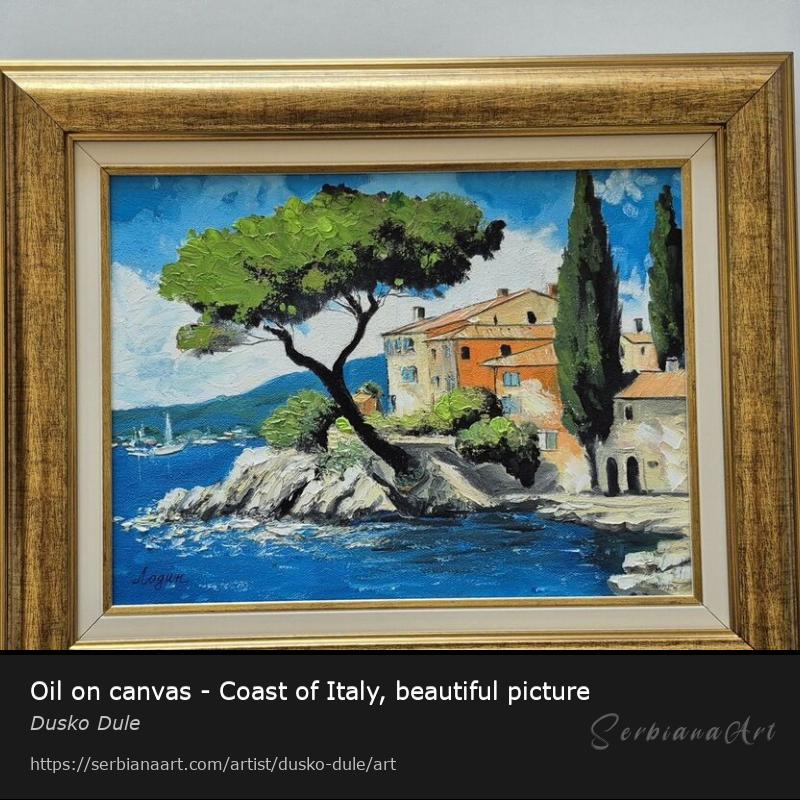 Oil on canvas - Coast of Italy, beautiful picture